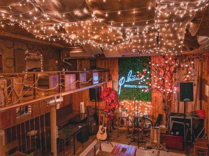 Trạm Dừng Acoustic Phiêu là điểm hẹn lý tưởng cho những người yêu thích âm nhạc acoustics. Với không gian ấm cúng, nội thất gỗ và đèn treo tinh tế, quán thường tổ chức các sự kiện nhạc sống với âm thanh sống động và giọng ca tuyệt vời. Không gian quán được chia thành hai khu vực: khu vực dưới phù hợp cho nhóm bạn, và khu vực trên dành cho cặp đôi với bàn ghế xinh xắn. Menu đa dạng, đồ uống thơm ngon, giá cả hợp lý, là điểm đến lý tưởng cho mọi buổi hẹn hoặc gặp gỡ bạn bè.