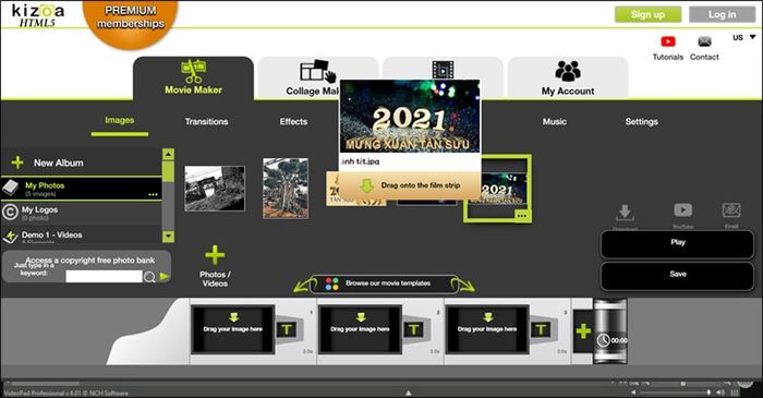 Kizoa là một công cụ chỉnh sửa video trực tuyến dành cho người mới bắt đầu. Bạn sẽ có những tính năng biên tập cơ bản, hỗ trợ chèn nhạc nền và tiêu đề,... là ứng dụng cực kỳ tiện lợi để bạn tạo ra đoạn video của mình trong vòng 20 phút.