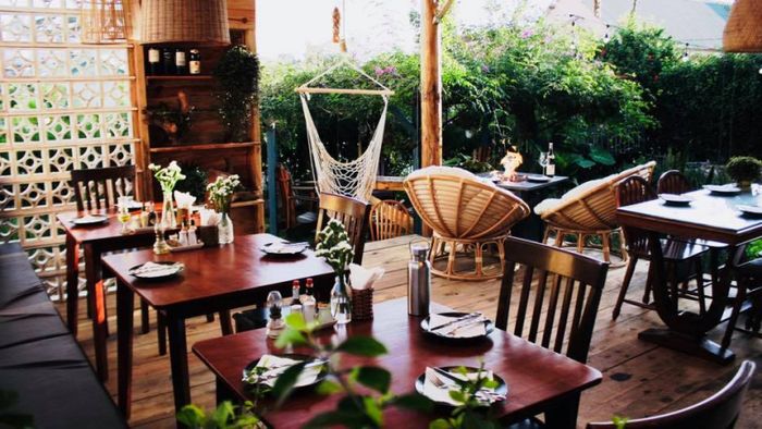 Nhà Gỗ mang đến không gian lãng mạn bên khu vườn, nơi bạn có thể tự hái những nhánh rau mùi tươi ngon như mint, choco mint, thyme. Rau được trồng tự nhiên, không sử dụng thuốc sâu hay hóa chất, đảm bảo an toàn cho sức khỏe. Nhân viên vui vẻ, niềm nở, và không gian yên tĩnh tạo điều kiện thuận lợi cho việc thư giãn.