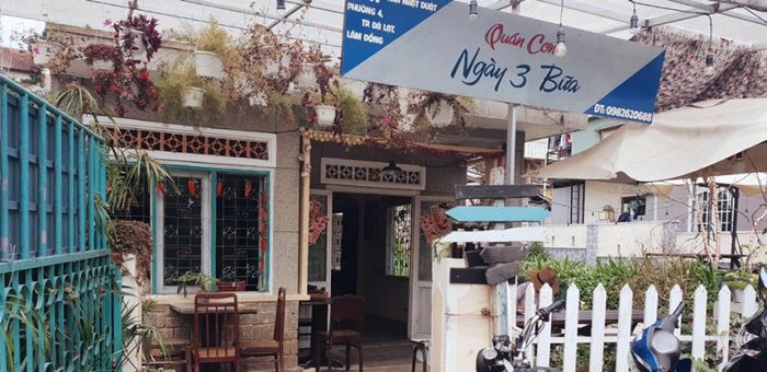 Đà Lạt có nhiều quán ngon, nhưng để tìm được nơi như nhà, nơi bạn có thể thưởng thức những bữa ăn giống như mẹ hay vợ nấu, thì không phải lúc nào cũng dễ dàng. Nếu bạn ở Đà Lạt, đừng bỏ lỡ Quán Cơm Ngày Ba Bữa này. Quán cơm ngày ba bữa không chỉ mang đến bữa ăn no lành mà còn hòa mình vào không khí gia đình, hồi tưởng về quê nhà với những ngôi nhà cổ, vườn hoa rực rỡ. Ngay từ lúc bước chân vào quán, thực khách sẽ cảm nhận được sự giản dị, tinh tế, không khí yên bình giống như ở quê nhà. Tiếng nhạc Trịnh du dương từ chiếc Radio cũ như một hồn quê mở lòng.