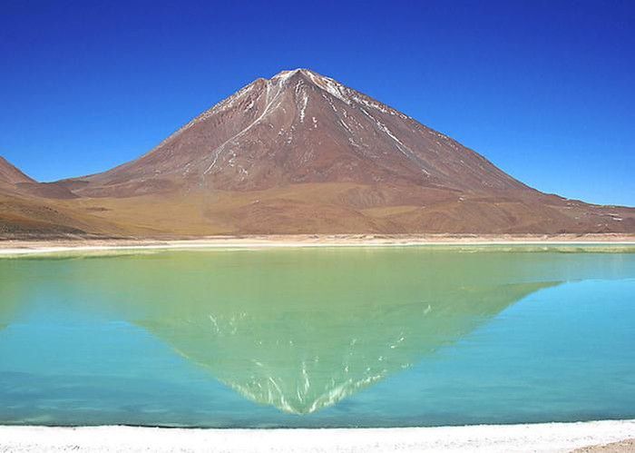 Nằm ở chân núi lửa Licancabur đã ngừng hoạt động, hồ muối này có màu xanh lá cây rực rỡ do các mỏ khoáng sản tạo nên. Điều thú vị nhất là điều kiện khí hậu không ảnh hưởng trạng thái nước trong hồ. Trong mùa đông, dù nhiệt độ giảm xuống mức -56 độ C, nước trong hồ vẫn luôn ở trạng thái lỏng. Theo từ điển Tây Ban Nha thì hồ Laguna Verde còn mang ý nghĩa là đầm xanh (Green Lagoon). Cảnh quan tuyệt đẹp xung quanh hồ và suối nước nóng đã thu hút được lượng lớn khách du lịch ghé thăm. Ngoài ra, hồ muối cạn này còn là thiên đường của loài chim hồng hạc nổi tiếng và nhiều loài chim khác. Tảo và các sinh vật phù du sống dưới hồ chính là nguồn cung cấp thức ăn khổng lồ cho các loài chim trời này. Thời tiết tại hồ Laguna lạnh vào ban đêm và ấm áp vào ban ngày, khá thuận lợi cho việc thăm thú quanh hồ của du khách.
