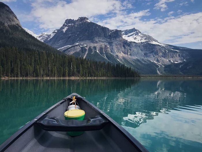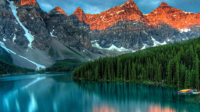 Được biết đến với cái tên 'viên ngọc của Canada', hồ Moraine là bức tranh hòa quyện giữa đất trời, núi đồi, rừng cây và mặt nước dịu dàng. Nước hồ Moraine, cấp từ sông băng, mang sắc xanh dịu nhẹ, tạo nên khung cảnh tuyệt vời với những ngọn núi đá, đỉnh tuyết trắng phủ, và đồi thông xanh mướt. Mỗi năm từ tháng 6 đến tháng 10, khi tuyết trên núi Tan Peaks tan chảy, ánh nắng mặt trời kết hợp với bột đá lắng đọng tạo nên một màu xanh huyền bí không giống bất kỳ hồ nước nào khác trên thế giới.