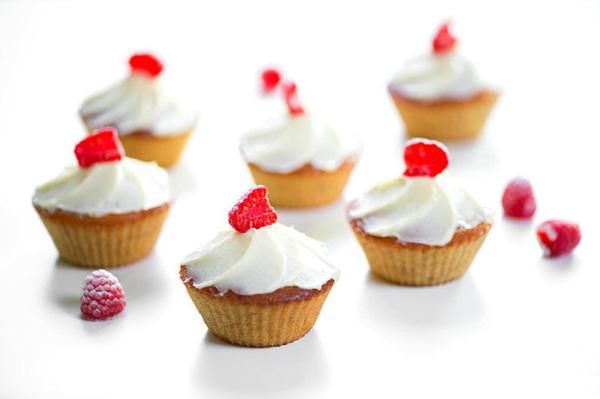 - Khi bánh nướng xong, thoa kem lên và trang trí với trái dâu rừng.
