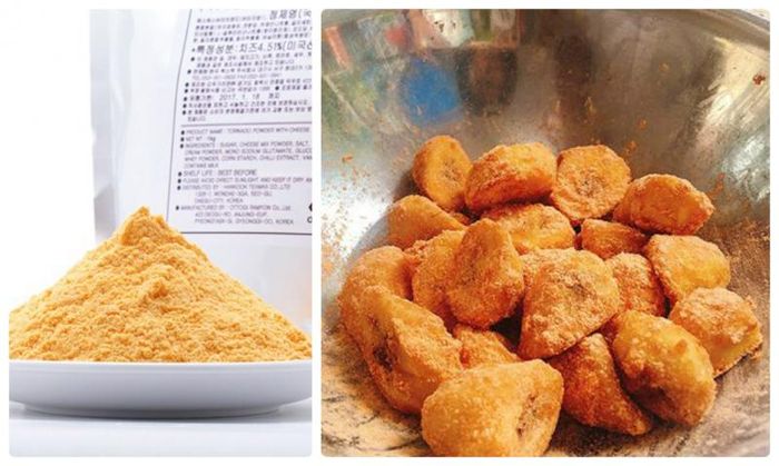 - Bước 2: Đặt chuối vào bịch giấy hoặc hộp có nắp, sau đó thêm phô mai và lắc đều. Chuối lắc phô mai sẽ khiến bạn thưởng thức một hương vị ngọt ngào của chuối kết hợp với mùi thơm đặc trưng của phô mai, giòn tan trong từng miếng.