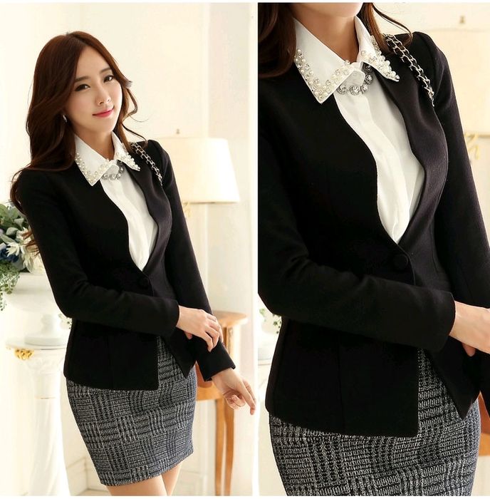 Bạn có thể phối áo vest đen cùng với sơ mi và quần tây đen, tạo nên một phong cách công sở phổ biến và thời thượng. Đây là sự lựa chọn yêu thích của nhiều chị em khi muốn tỏa sáng trong môi trường làm việc.