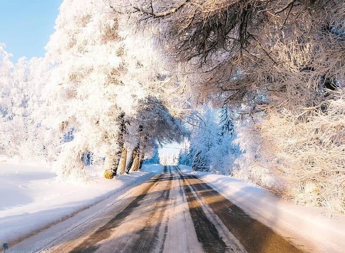 Hình ảnh từ trên cao, một con đường tuyệt đẹp được tạo bởi mùa đông khắc nghiệt.