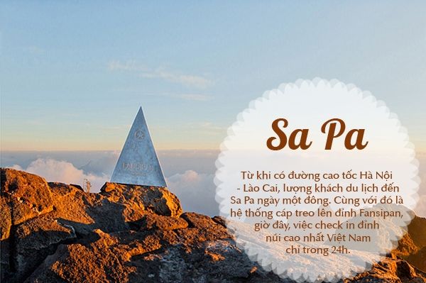 Thị trấn Sa Pa mang đến không gian mộng mơ, với những điểm du lịch như bản Cát Cát, núi Hàm Long, nhà thờ đá, chợ tình, và đỉnh Fansipan huyền thoại. Đường cao tốc Hà Nội - Lào Cai giúp hành trình đi lại thuận tiện hơn nhiều, giảm thời gian di chuyển cho du khách.