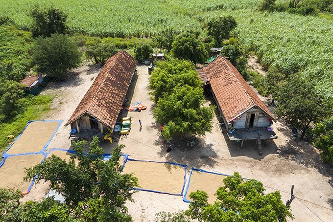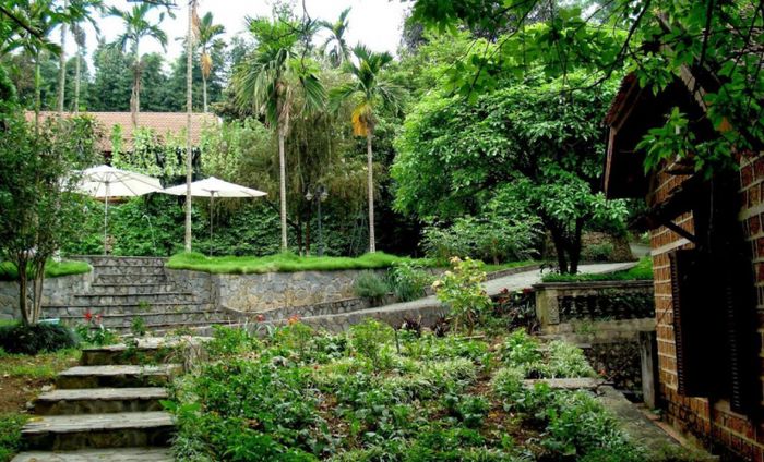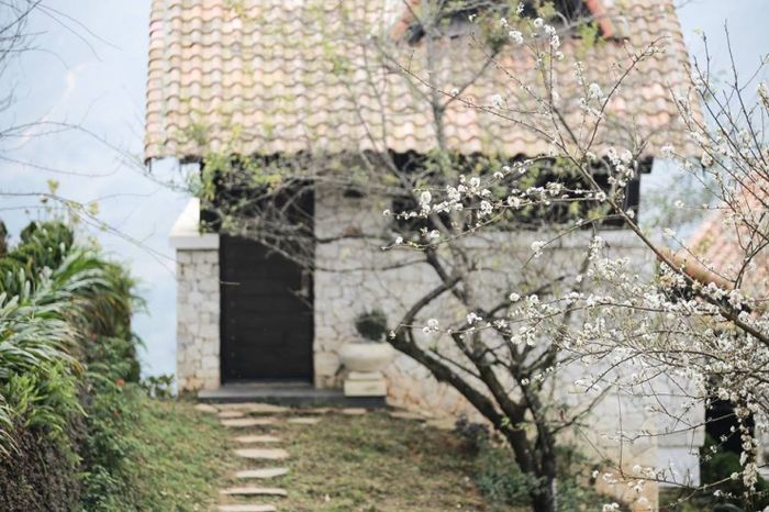 Nó mang đậm nét độc đáo của những ngôi nhà nông thôn, nhỏ nhắn và dễ thương, không quá xa hoa nhưng ấm cúng, sạch sẽ. Tường nhà được sơn màu xanh da trời, tạo cảm giác tươi mới. Mái nhà được làm từ những lớp ngói đỏ tươi. Ngôi nhà trôi dậy sau những tán cây xanh mát, bên cạnh cánh đồng lúa bát ngát.