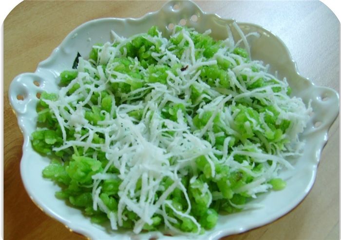 - Lấy cốm ra tô, thêm đường, dừa nạo, và đậu xanh vào trộn đều trước khi thưởng thức.