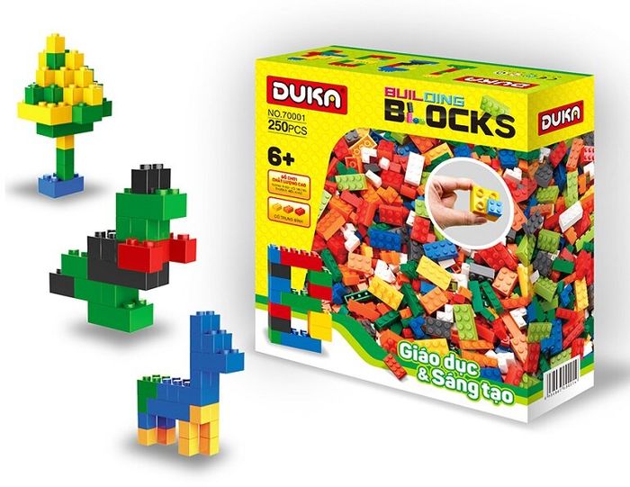 – Bộ đồ chơi ghép hình Duka với nhiều mảnh ghép màu sắc đa dạng giúp bé tự do sáng tạo, tạo ra các mô hình quen thuộc trong cuộc sống như ngôi nhà, ô tô, động vật, đoàn tàu... Bộ ghép hình này đòi hỏi bé phải tỉ mỉ, kiên trì và nhẫn nại để ghép từng chi tiết nhỏ thành mô hình hoàn chỉnh, giúp bé hiểu về giá trị lao động.