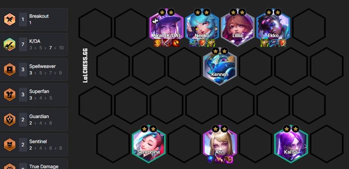 Với Kai'Sa hoặc Seraphine, K/DA có thể gây sát thương ở giai đoạn đầu trận. Đội hình này giúp bạn cải thiện rank cuối mùa giải của mình.