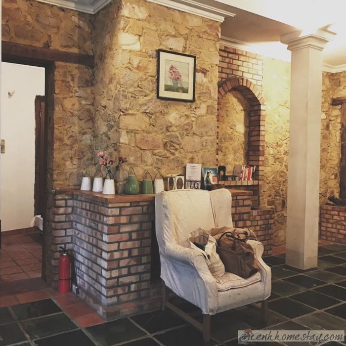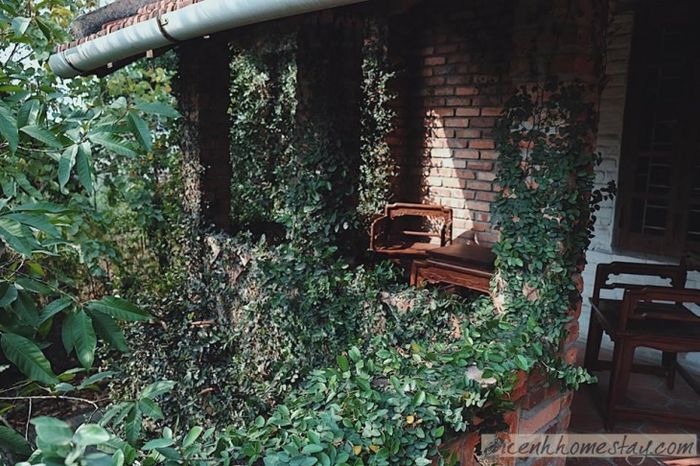 Homestay được bao quanh bởi màu xanh tươi mát của cây leo. Hình ảnh mỗi buổi sáng với tia nắng đầu tiên chiếu qua lá cây tạo nên khung cảnh tuyệt vời.
