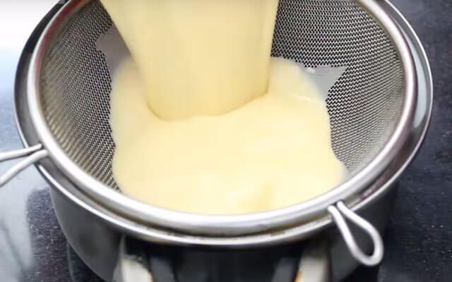 - Sau cùng, lọc hỗn hợp qua rây để hỗn hợp trở nên mịn màng hơn. Điều này sẽ giúp bánh trứng gà non thêm ngon và tránh bị cứng do những phần lợn cợn.