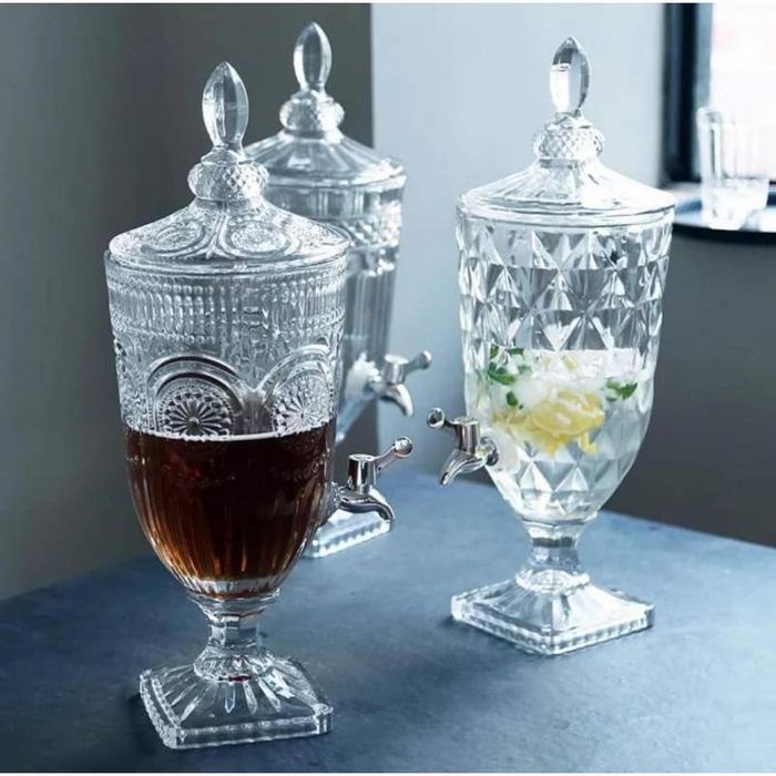 Thảo Shop offers high-quality glass jars with sleek, cylindrical designs ideal for liquor infusion. These jars feature attractive patterns resembling trophies, airtight lids, and convenient spouts. They are perfect for storing both liquor and medicinal herbs, ensuring the contents are preserved safely.