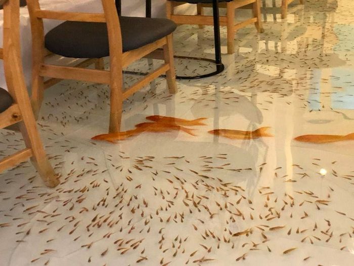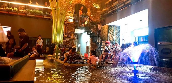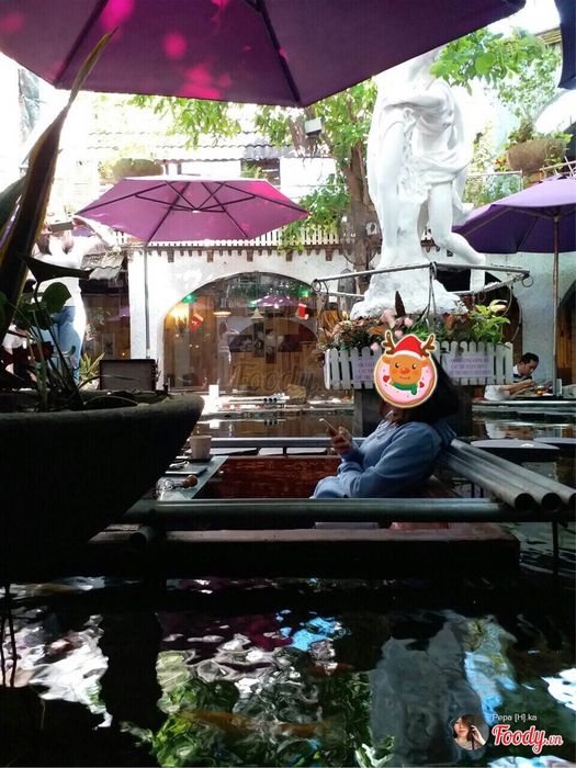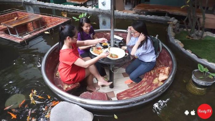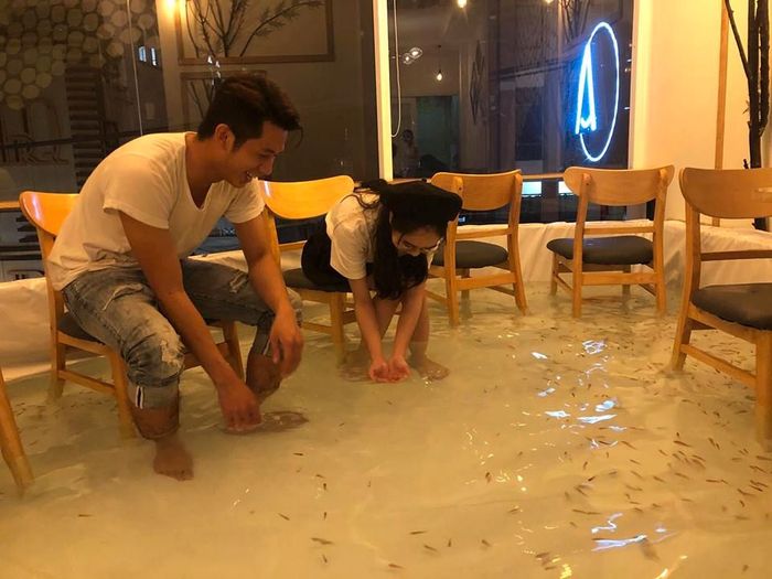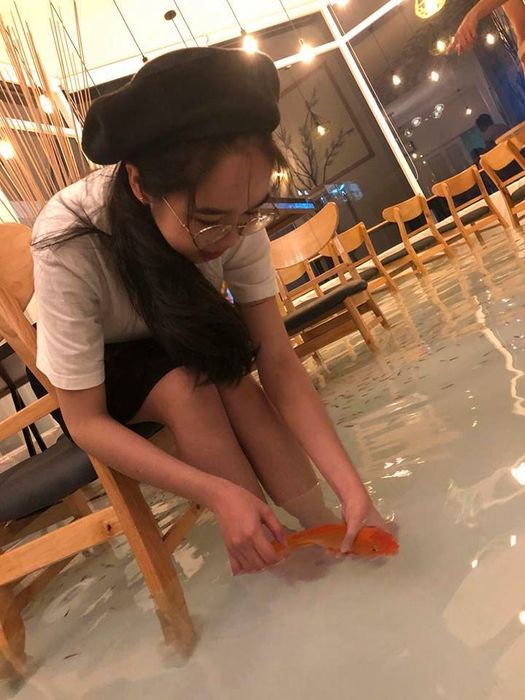 Trời nắng nóng mà vào quán được ngâm chân dưới nước với hồ cá bơi tung tăng như này thì thích phải biết, vừa lạ vừa hay, lại còn được massage chân miễn phí nữa đó.