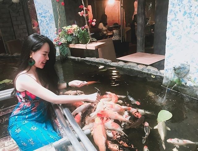 Bạn có thể thoải mái vui chơi cùng đàn cá, cho chúng ăn hoặc đơn giản là chụp hình sống ảo với đàn cá đủ màu sắc.