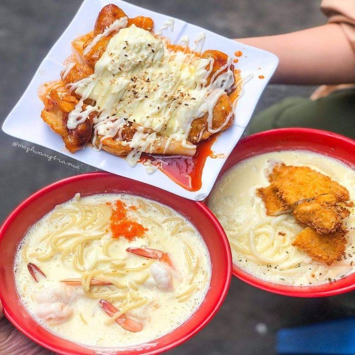 Ngoài hương vị hấp dẫn của món gà cay phô mai, quán còn sở hữu nhiều món ngon khác độc đáo. Trong số đó, món Mì Ý xông khói sốt kem của quán là một trong những độc nhất vô nhị. Hòa mình vào hương vị của sốt kem béo ngậy, mì Ý xông khói tại đây chắc chắn sẽ làm bạn phải xuýt xoa.