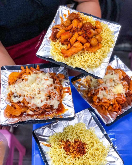 Quán không chỉ có gà cay phô mai mà còn đa dạng các món hấp dẫn như Tok cay phomai, cá viên/tôm/ bò táo cay phomai, chân gà rút xương cay và loạt mì cay như mì samyang trộn, mì gà cay, mì bò viên cay,… Giá cả phải chăng, từ 30k – 90k/phần, thực khách sẽ tha hồ trải nghiệm và thưởng thức.