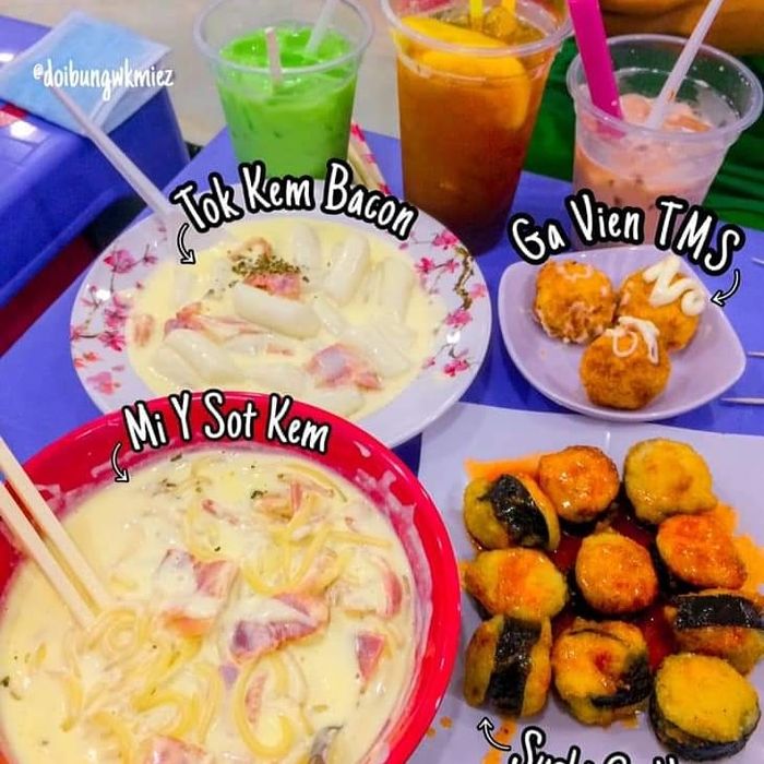 Hòa mình trong không khí ẩm thực, quán Thúy Hằng không chỉ nổi tiếng với gà cay phô mai mà còn là địa điểm quy聾 tụ các đặc sản ngon tuyệt khác như sushi, cơm trộn, mì Yokisoba, mì Udon kem gà giòn, cá viên cà ri,... Tất cả đều được chế biến tinh tế, hấp dẫn với giá chỉ từ 35k – 55k/món. Hãy đến và trải nghiệm cùng bạn bè ngay hôm nay!