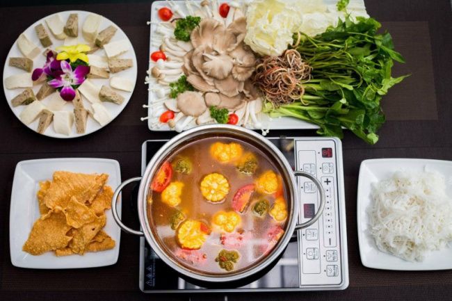 Không thể bỏ qua các loại lẩu chay tại Cơm Chay An Phúc ngõ 113 Hoàng Cầu. Với cách nấu nước lẩu đơn giản, bạn sẽ trải nghiệm hương vị đặc sắc chỉ từ rau, củ, quả.
