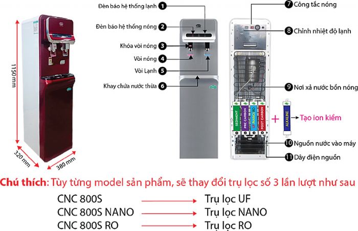 - Máy lọc nước RO nóng lạnh Karofi KAD-D66 11 lõi: Thiết kế tinh tế, 10 lõi lọc mạnh mẽ, tái tạo nước sạch và an toàn.