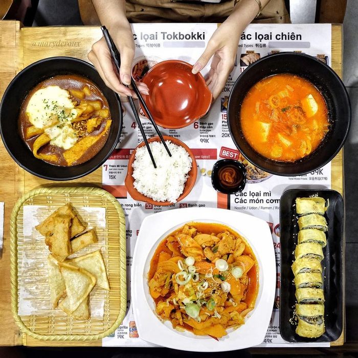 K-Pop - Điểm hẹn mới cho tín đồ Hàn Quốc với thực đơn đa dạng từ tteokbokki, cơm cuộn, mì tương đen đến phô mai que, gà rán. Giá cả hợp lý, phục vụ phần ăn phong phú. Ảnh: Maryderoux, foodholicvn.