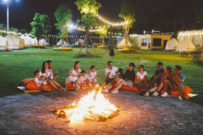 CallVietgangz Glamping Club SaiGon spans over 10,000m2 of lush green lawns, right next to the serene Saigon River. This campsite is perfect for groups of friends, couples, and families who love nature and want to escape the hustle and bustle of the city. The club offers various areas and services, including camping accommodations, an outdoor pool, riverside dining, children's play areas, and outdoor activities. Special attractions include archery, paddleboarding, horseback riding, and a mini zoo for guests to explore.