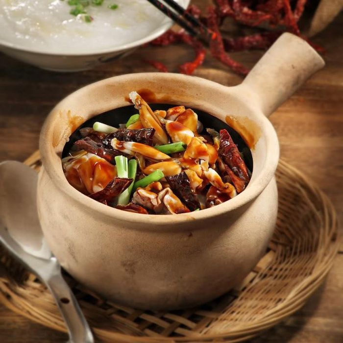 Cháo ếch được đựng trong nồi đất sạch sẽ, giữ nhiệt độ nóng hổi, tạo nên hương vị đặc trưng. Phần cháo ếch được chế biến từ cháo và thịt ếch rim keo thấm đều vị nước sốt, tạo nên hương vị ngon đậm đà. Không chỉ có cháo ếch, quán Cháo Ếch Singapore 79 còn phục vụ nhiều món ăn khác như ếch chiên, mì ếch, ếch xào sả ớt...
