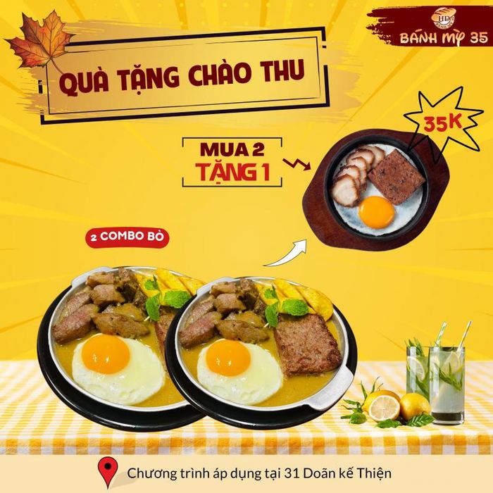 Bánh Mì 35 is a popular spot for many visitors to Hanoi. The shop serves a variety of bánh mì such as pork, chicken, beef, and the signature bánh mì chảo, along with refreshing beverages like fruit juices, coffee, and smoothies. What's special is that they also offer vegetarian bánh mì for those avoiding meat or oily food. If you're craving a bánh mì chảo, you're in for a treat—affordable, delicious, and visually appealing. The price of bánh mì chảo at Bánh Mì 35 ranges from 40,000 to 65,000 VND per serving.
