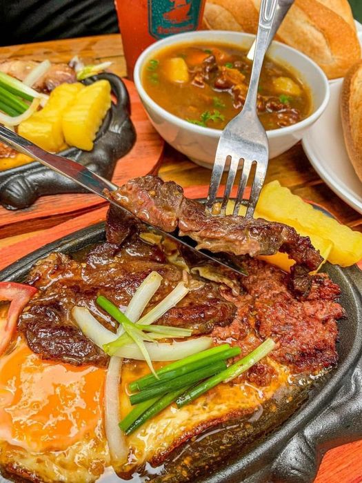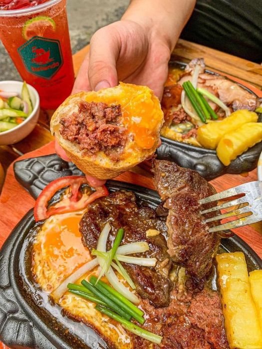 The steak skillet is incredibly tempting, with tender, sweet beef, along with pate, fried potatoes, and eggs. The hot, crispy bread dipped in the sauce and toppings makes for an amazing meal, especially on a cold day. The service is fast and friendly, and with reasonable prices and great quality, Bailando is definitely worth trying. The steak portion is priced at 75,000 VND, and the special steak at 99,000 VND. For a lighter meal, you can choose the special skillet sandwich for only 35,000 VND.