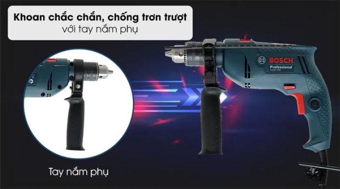With a powerful 550W motor and a no-load speed of up to 2800 RPM, the Bosch GSB 550 allows users to easily control the speed, making drilling and screw driving tasks faster and more efficient. The drill comes with a reverse function and dual drilling modes (normal and hammer), providing flexibility for different materials and jobs. It also helps save time and effort by allowing users to easily remove stuck screws. The 13mm chuck diameter ensures a secure grip on the drill bit, reducing the risk of slipping or loosening, ensuring excellent performance on various materials.