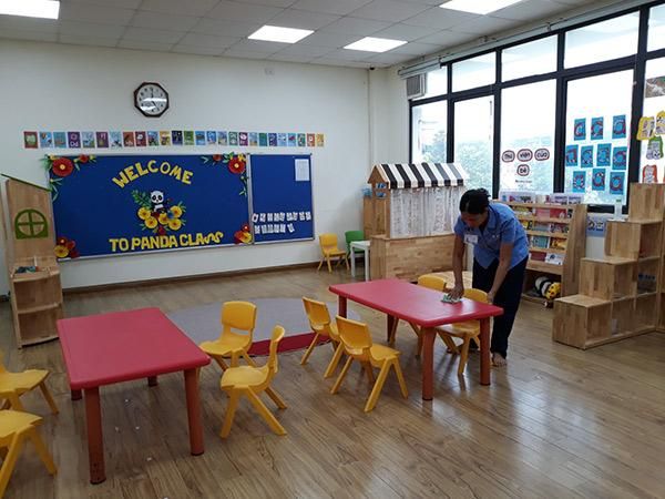Additionally, Pan offers periodic cleaning services, with routine cleaning scheduled weekly and monthly. Pan Services Hanoi has established a thorough cleaning process for schools, which includes the following steps: