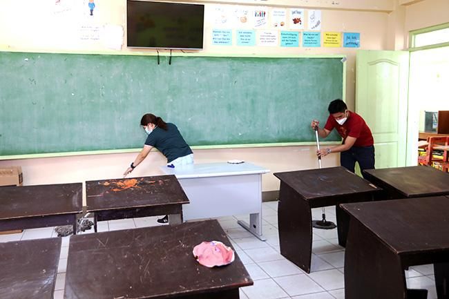 - Wiping down desks, chairs, and other equipment in classrooms and hallways.