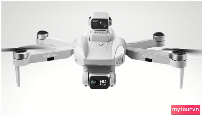 Với thiết kế nhỏ gọn và tiện lợi, flycam K90 Max dễ cầm nắm và điều khiển. Sản phẩm có hai phiên bản màu trắng và đen. Điểm đặc biệt là tích hợp cảm biến phát hiện vật thể phía trên thân máy, giúp nó có khả năng phát hiện và tránh vật cản trong phạm vi 3 - 5 mét. Điều này đảm bảo an toàn, đặc biệt là cho những người mới chơi flycam.