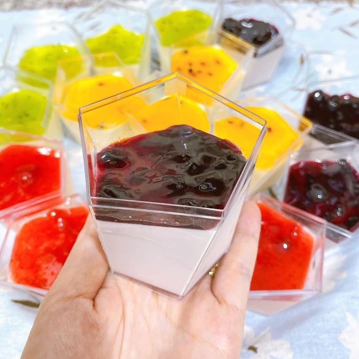 Panna cotta tại quán không chỉ đa dạng về hương vị từ truyền thống như socola và vani đến những lựa chọn độc đáo như dâu tây, chanh leo, trà xanh, cà phê,... Mỗi miếng Panna cotta tại Tâm Trần - Bakery đều độ mềm mịn, tan chảy trong miệng. Khi kết hợp với trái cây tươi như dâu, xoài, kiwi, món tráng miệng trở nên phong phú về hương vị và giá trị dinh dưỡng.