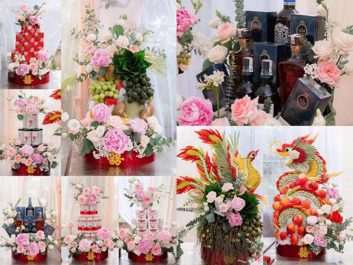 Tráp cưới tại Royal Florist được trang trí bằng hoa tươi vô cùng sang trọng, bao gồm các loại tráp như: