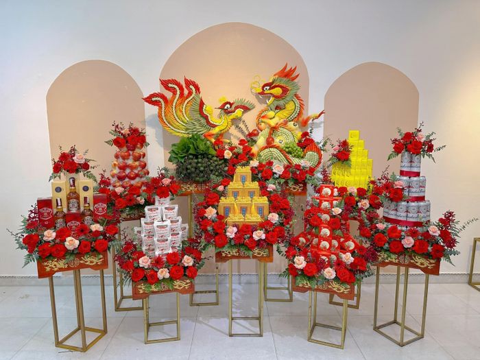 Tráp cưới hỏi Thúy Nga không chỉ mang đến các mẫu tráp truyền thống như rồng phượng mà còn kết hợp với pha cách hiện đại. Bạn có thể chọn từ các mẫu tráp có sẵn hoặc thậm chí tự thiết kế, và đội ngũ chuyên nghiệp tại Thuý Nga sẽ giúp bạn trang trí theo ý muốn.