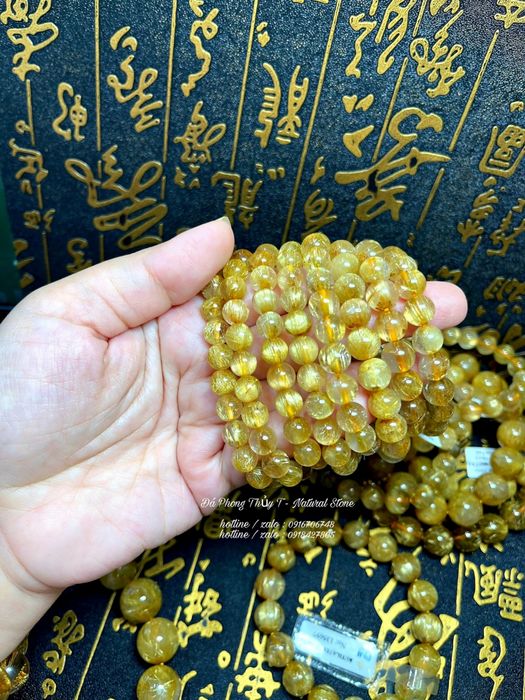 Vòng tay thạch anh tóc vàng tại Cửa hàng Trang Sức Đá Quý TNS với màu vàng tươi trẻ, trong phong thủy tượng trưng cho ánh sáng, sự tươi mới, đem lại hạnh phúc, thịnh vượng và sức khỏe. Đây là biểu tượng của trí tuệ, sự thông thái, ánh hào quang. Phù hợp cho những người kinh doanh, nghiên cứu, chính trị, nghệ thuật.