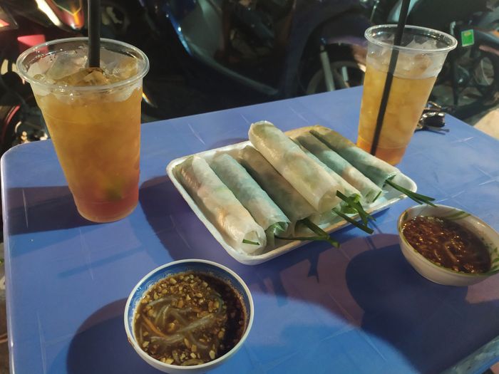 Mỗi chiếc cuốn đều được chế biến cẩn thận với hai con tôm sú to bự, tạo nên bức tranh màu sắc hấp dẫn. Chén nước chấm với hương vị chua, cay, mặn, ngọt hài hòa là điểm đặc biệt của Nhâm Nhi Cuốn - Nguyễn Hữu Cầu. Với thời tiết lạnh, ghé ngay Nhâm Nhi Cuốn để thưởng thức bữa trưa ngon lành, bổ dưỡng với nhiều sự lựa chọn hấp dẫn. Món ăn này mang lại sự cân bằng dinh dưỡng với rau củ và tinh bột, là lựa chọn hoàn hảo cho bữa trưa hấp dẫn.