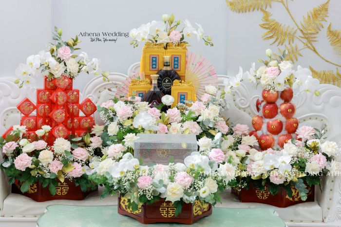 Những mâm cưới được làm tại cửa hàng Mâm Quả Athena thể hiện niềm vui nhân đôi với cả gia đình nhà trai và nhà gái, đánh dấu sự kết nối gia đình. Với vỏ tráp trong suốt, lễ vật bên trong được phô bày trọn vẹn, mang đến nét hiện đại và tinh tế. Những bộ tráp được chăm chút tỉ mỉ, công phu đến từng chi tiết, kết hợp nét đẹp hiện đại và truyền thống Việt Nam xưa.