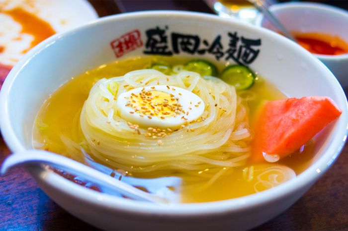 Trong những ngày oi bức của TP. HCM, đừng ngần ngại ghé qua Fuji-Saryo hoặc đặt mì lạnh qua các ứng dụng đặt thức ăn trực tuyến để trải nghiệm hương vị đặc trưng của món ăn Nhật Bản, được chế biến theo mùa và thời tiết. Sợi mì được làm từ tinh bột khoai tây, mang lại độ giòn và sự tách sợi. Mì kết hợp với nước dùng thơm, thịt nguội, trứng, kim chi, cà chua và dưa leo, tạo nên một món salad lạnh độc đáo. Mì lạnh tại đây là sự hoà quyện của sợi mì giòn, mát mẻ với nước sốt và hương vị đặc trưng từ các nguyên liệu.