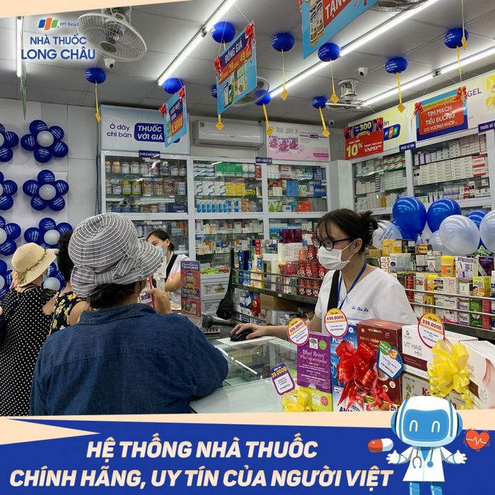 Nhà thuốc Long Châu - Thành viên tập đoàn FPT là một trong những chuỗi bán lẻ dược phẩm uy tín tại Việt Nam với kinh nghiệm lên đến 20 năm trong lĩnh vực, cam kết mang đến sức khỏe tốt nhất cho cộng đồng. Là một phần của chuỗi nhà thuốc có độ phủ rộng khắp 63 tỉnh thành, Nhà thuốc FPT Long Châu không chỉ cung cấp thuốc kê đơn và không kê đơn mà còn có các sản phẩm thực phẩm chức năng, trang thiết bị y tế, dược mỹ phẩm, sản phẩm chăm sóc sức khỏe hàng ngày, và nhiều hơn nữa.