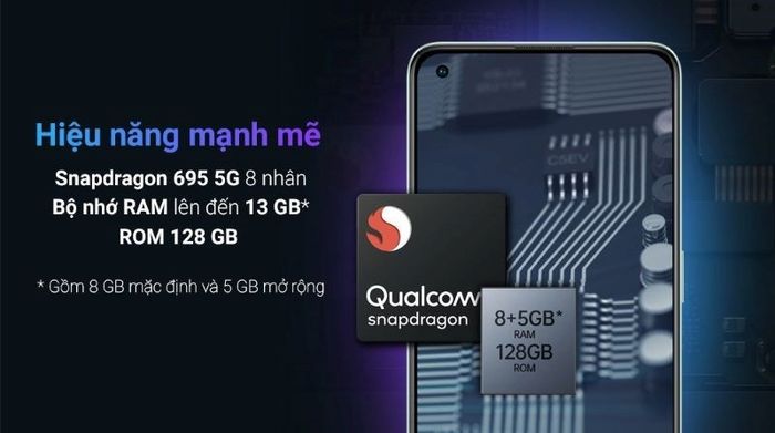 Với giá tương đối hợp lý, chiếc điện thoại OPPO này thu hút rất nhiều game thủ bởi hiệu năng vô cùng ấn tượng. Sức mạnh của con chip Snapdragon 695 5G 8 nhân kết hợp cùng RAM 8GB tạo nên khả năng đa nhiệm xuất sắc. Dung lượng pin 4500mAh giúp bạn trải nghiệm giải trí mỗi ngày mà không lo hết pin.