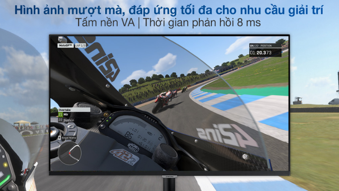 Tấm Nền VA đảm bảo đồ hoạ sắc nét với công nghệ Adaptive Picture tự điều chỉnh ánh sáng môi trường. Chơi game mà không lo ánh sáng xung quanh ảnh hưởng đến trải nghiệm của bạn.