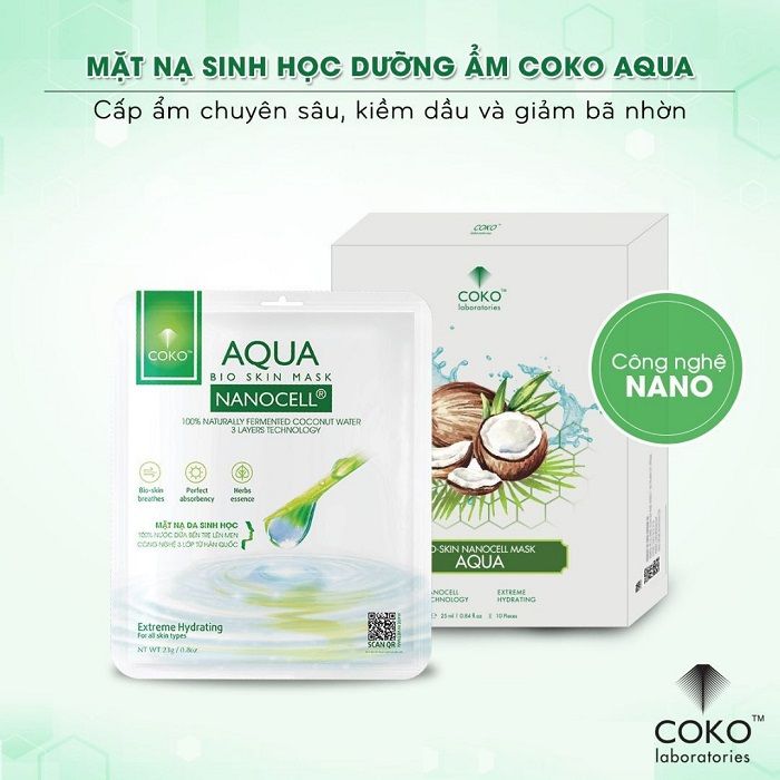 Mặt nạ dưỡng ẩm Aqua COKO Deep Moisture Bio Skin Nanocell Mask là sản phẩm đang rất được ưa chuộng. Với công nghệ Nano sinh học, mặt nạ giúp cải thiện độ ẩm, làm sáng da và mang lại làn da trắng mịn.