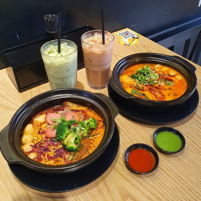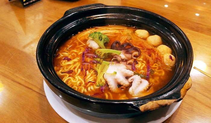 Mỗi bát mì ở đây đều đầy ắp các loại topping như thịt bò, xúc xích, viên tôm, viên cá,... và đi kèm với rau cải hoặc nấm kim châm để tăng thêm hương vị. Nước mì với độ cay và sệt được điều chỉnh tùy thuộc vào cấp độ, đều có hương vị đậm đà, nồng nàn, mang đậm dấu ấn ẩm thực Hàn Quốc. Giá cả ở đây phải chăng, dao động từ 50.000 - 80.000 VNĐ mỗi bát mì, và còn nhiều đồ ăn vặt Hàn Quốc khác để thưởng thức.