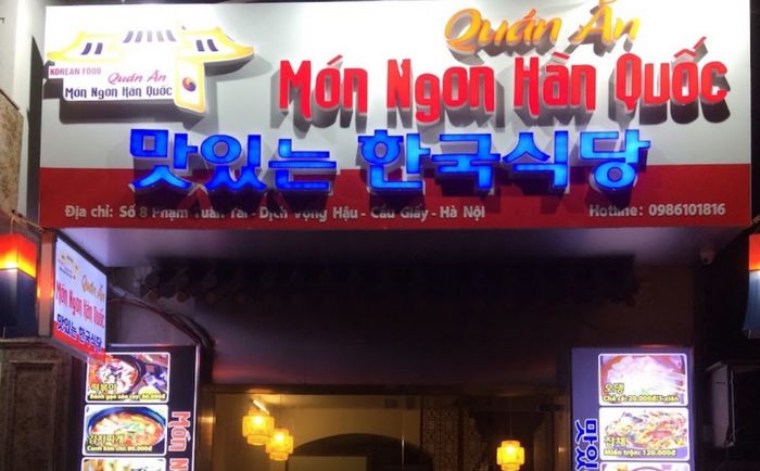 Tọa lạc trên đường Phạm Tuấn Tài, quận Cầu Giấy, Quán ẩm thực Hàn Quốc thu hút thực khách bởi không khí ấm cúng, trang trí bình dân nhưng đầy sức cuốn hút. Với đội ngũ nhân viên nhiệt tình và chuyên nghiệp, quán là điểm đến lý tưởng cho những tín đồ ẩm thực Hàn Quốc.