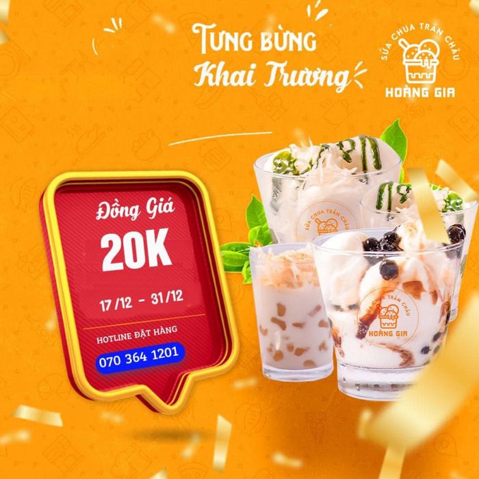 Với tâm huyết mang đến hương vị nguyên bản, mỗi loại sữa chua được chủ thương hiệu nghiên cứu kỹ lưỡng dựa trên nhu cầu và sở thích của người tiêu dùng. Chi nhánh thứ 9 tại Đại Phúc - Bắc Ninh, cùng chi nhánh mới tại Gia Bình, Bắc Ninh, là nỗ lực để tiếp cận nhiều tín đồ sữa chua trân châu hơn. Không gian quán được thiết kế thoải mái với nhiều góc chụp hình, tầng 2 có không gian mở để thưởng thức sữa chua trân châu mát lạnh. Nếu bạn muốn trải nghiệm không khí mới mẻ vào cuối tuần, hãy ghé sữa chua trân châu Hoàng Gia nhé!