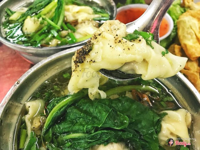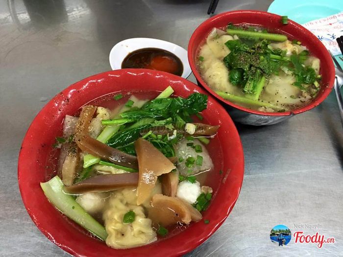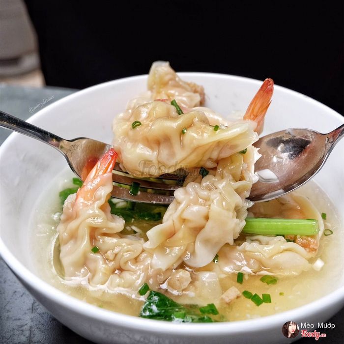 Nước dùng thơm ngon, trong suốt và ngọt tự nhiên do được nấu từ nước hầm xương và cải. Mỗi viên sủi cảo đều có một con tôm to bự bên trong. Tôm tươi được bọc kín bởi một lớp thịt và vỏ sủi cảo ngoài cùng mịn màng.