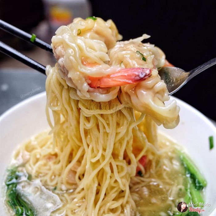 Mì khô trộn thơm phức, tép mỡ ngon, mì dai và giòn không bị nhão. Sủi cảo tôm thịt thơm ngon và dai, ăn không bị ngán. Lớp vỏ mỏng mịn trôi nhẹ vào miệng.